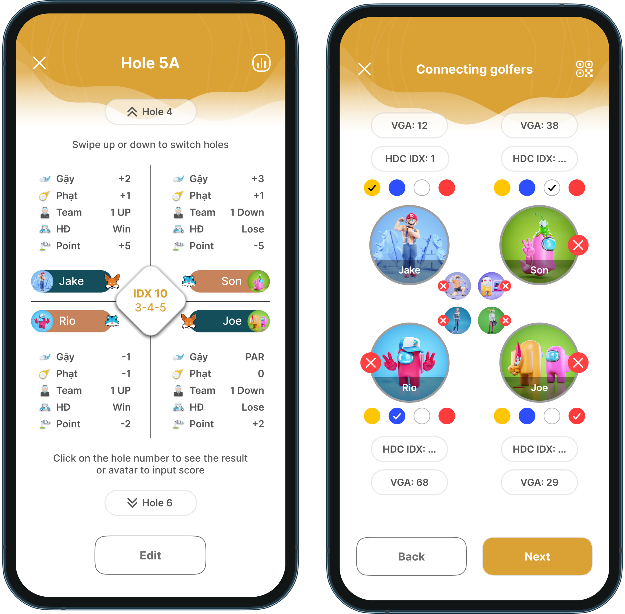 Thao tác nhập điểm điện tử nhanh chóng không cần viết giất, giúp việc nhập điểm của caddie dễ dàng hơn.